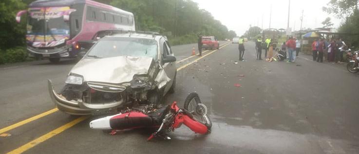 placas GSC - 4180. El accidente ocurrió la mañana de ayer, domingo 28 de mayo, en el kilómetro 26 de la vía Santo Domingo - La Concordia, cerca al ingreso de la parroquia rural Valle Hermoso Según testigos, el carro presuntamente circulaba a exceso de velocidad con dirección a Santo Domingo, mientras que la moto se
