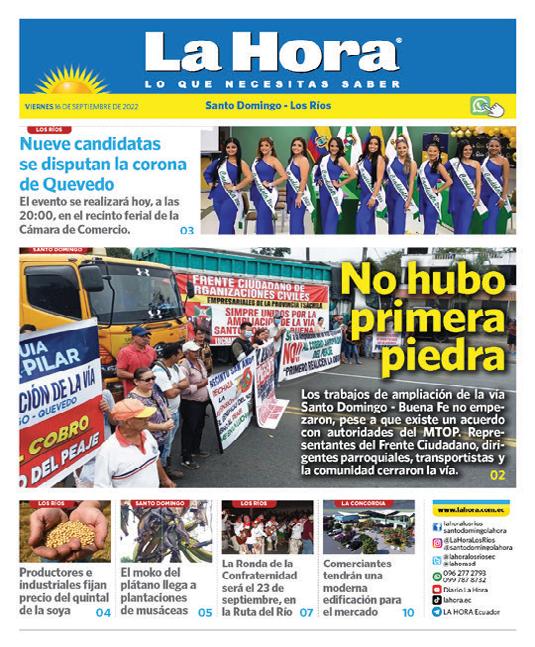 Cada vez hay más menores de edad procesados por sicariato en Ecuador 8 Paulina Figueroa es la nueva Reina de Vinces 5 Municipio de Babahoyo habría sido recibido en pésimas condiciones 4 Abogados demandarán al CJ por irregulares sorteos de casos 7 SOCIEDAD CIUDAD CIUDAD JUSTICIA Estado de excepción podría renovarse www.lahora.com.ec LA HORA Ecuador lahoralosrios @LaHoraLosRios @lahoralosriosec Diario La Hora lahora.ec LUNES 29 DE MAYO DE 2023 Los Ríos La medida dictada por Guillermo Lasso, presidente de la República del Ecuador, culmina a fines de este mes; según las autoridades de Los Ríos, ha dado buenos resultados. 3