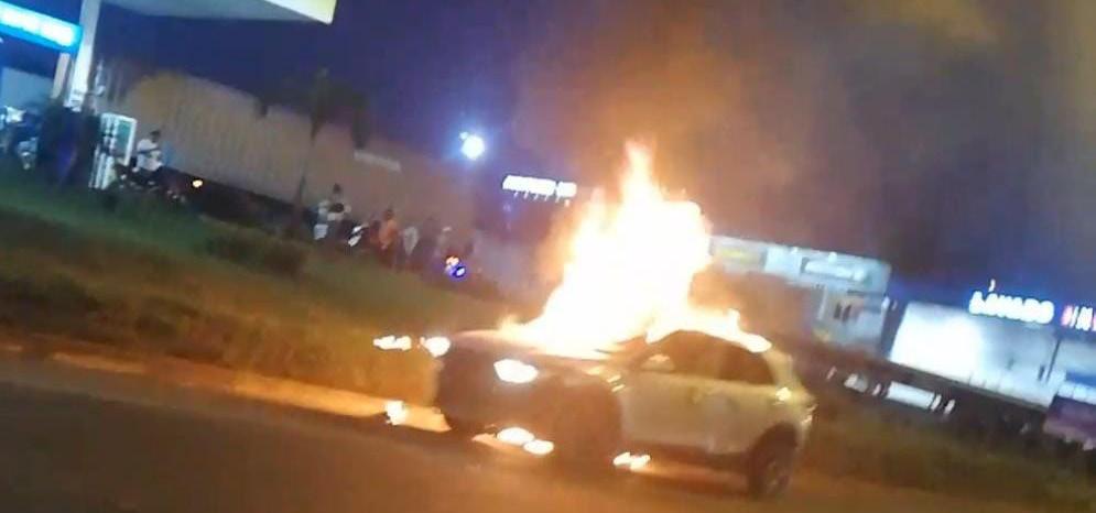 PROBLEMA. Sujetos aún desconocidos quemaron un carro en los exteriores de la gasolinera de Unitaxis.