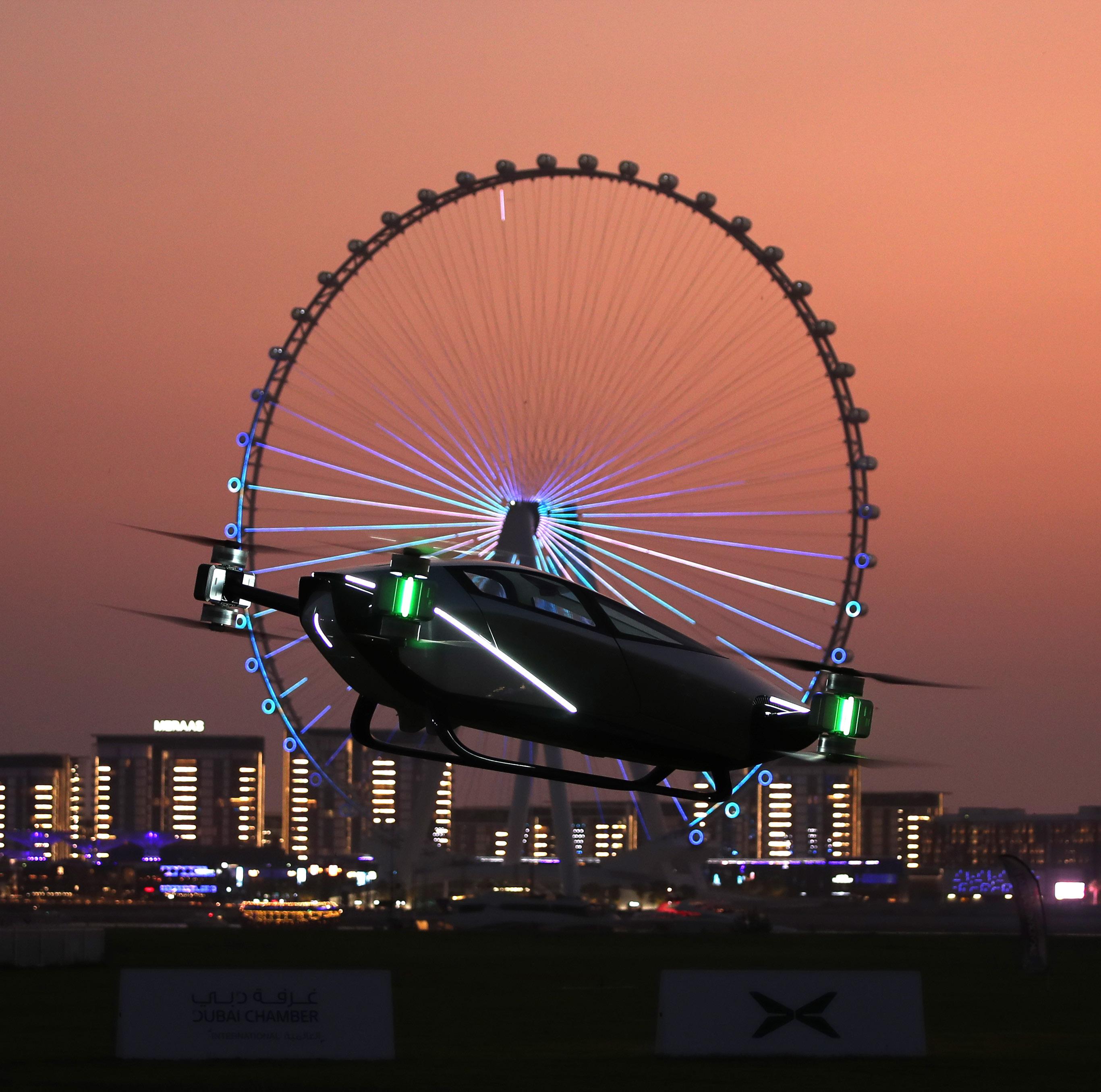 JUEVES 13 DE OCTUBRE DE 2022 Los Ríos Imagen del auto volador eVTOL X2 durante su primer vuelo público mundial como parte de la Exposición de Tecnología de la Información del Golfo (GITEX) Global 2022 en la pista de SkyDive Dubai en el emirato del Golfo de Dubai, Emiratos Árabes Unidos. EFE El eVTOL X2 hace su primer vuelo público en Dubai Da clic para estar siempre informado