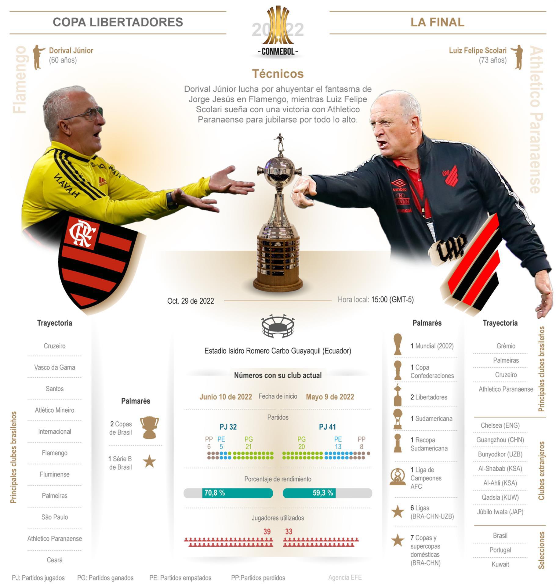 Dorival Júnior lucha por ahuyentar el fantasma de Jorge Jesús en Flamengo, mientras Luiz Felipe Scolari sueña con una victoria con Athletico Paranaense para jubilarse por todo lo alto.