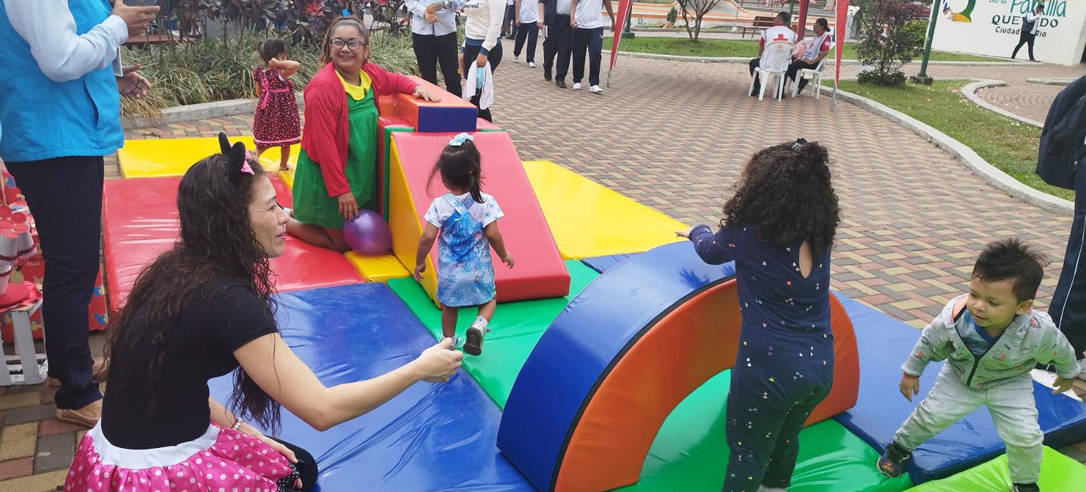 Desde las 09:00 hasta las 15:00, los exteriores del parque se llenó de stands de todo de tipo de empren dimientos, tal es el caso de comidas típicas, frutas y verduras que se cosechan en la Costa, artesanías, postres, exposición de po llitos, también se contó con el balcón de servicios de las diferentes entidades del Go bierno y de la ciudad.