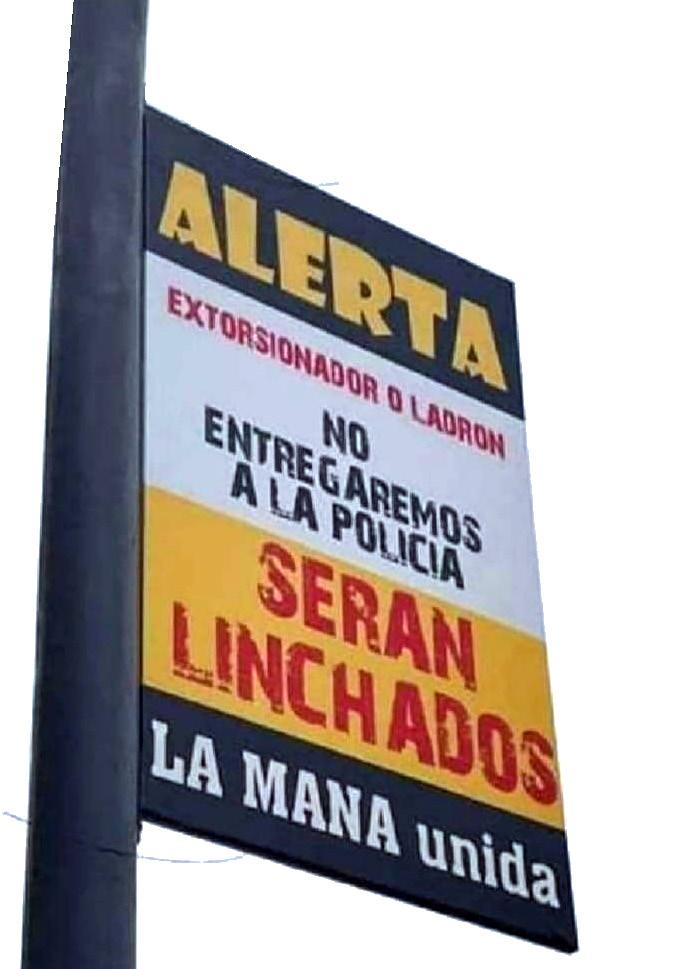 Maná, provincia de Coto paxi, se lee. ‘ Alerta extorsionador o ladrón, no entregaremos a la Policía Nacional, serán linchados, La Maná Unido’.