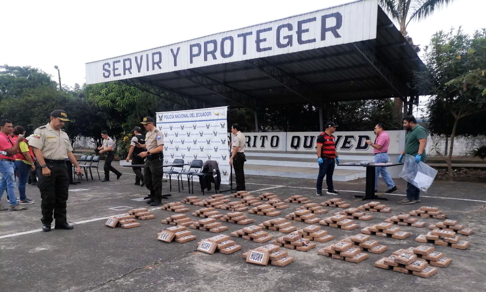 Marco Ortiz, jefe del dis trito de Policía Quevedo – Mocache, señaló que, me diante gestión de patrullaje preventivo, en coordinación con personal del eje inves tigativo y unidades tácticas como: el Grupo de Opera ciones Especiales (GOE), y Criminalística, se ubicó un vehículo tipo camión en el patio de una vivienda, y en el cajón se encontraron sa cos de yute, que contenían tubérculos (papas) y que de inmediato se realizó el regis tro, encontrando varios pa quetes tipo bloques cubier tos con cintas de embalaje y con varias leyendas.