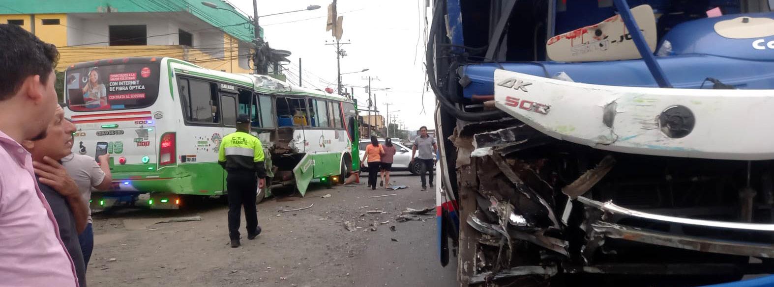 A la altura de la Universi dad Técnica de Babahoyo (UTB), en el cantón Queve do, este lunes 25 de octubre de 2022, a las 17:30, un bus urbano que se dirigía hacia la Universidad, fue enves tido por un bus interpro vincial que transitaba en la ruta Valencia-Quevedo.