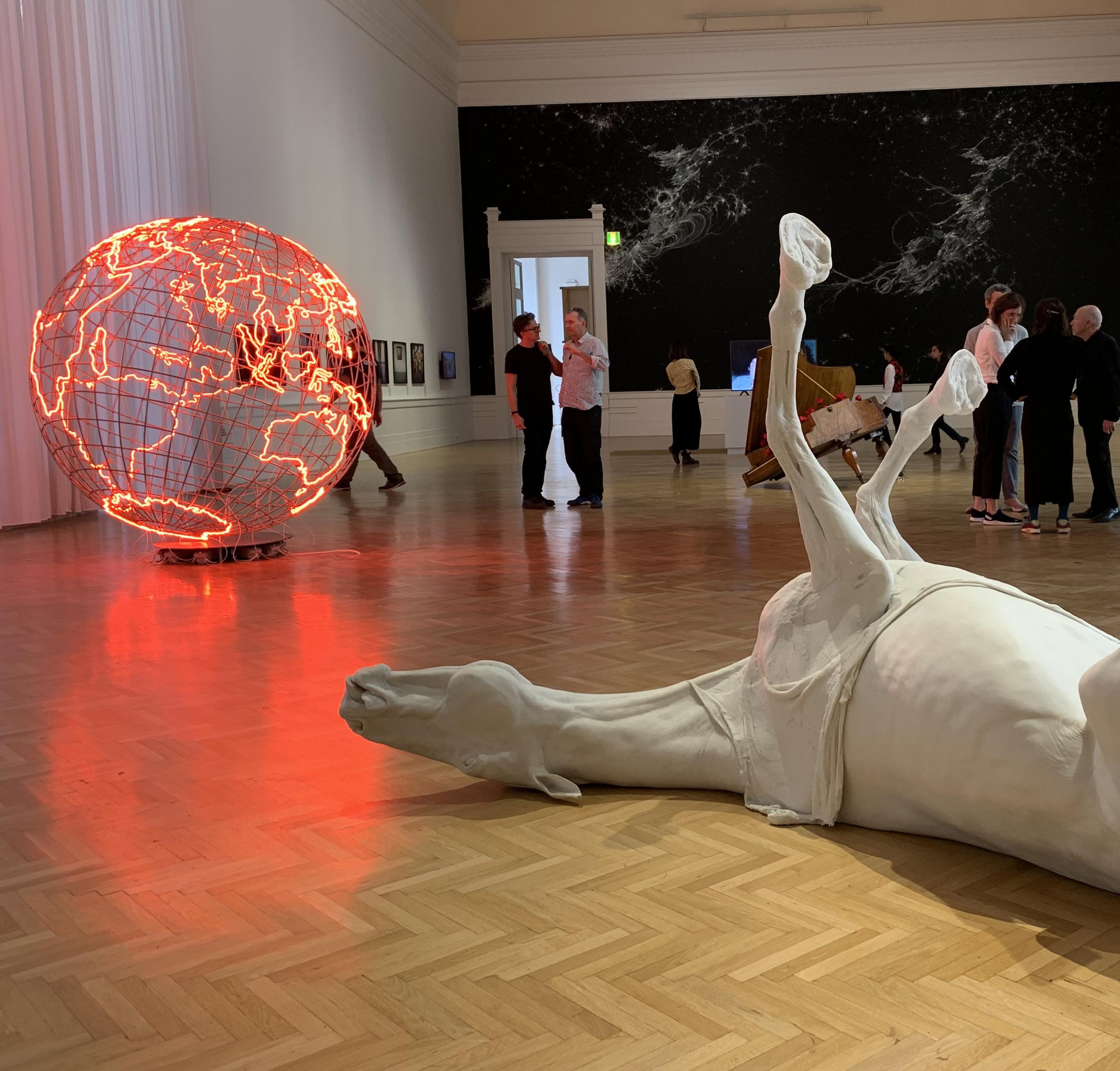Vista de la exposición ‘Hot Spot. Cuidando un mundo en llamas’, en la Galería Nacional de Arte Moderno y Contemporáneo de Roma (Italia). Esta forma de ‘activismo estético’ por el medioambiente se plasma en las obras de 26 artistas internacionales que se muestran al público desde este 24 de octubre de 2022. EFE