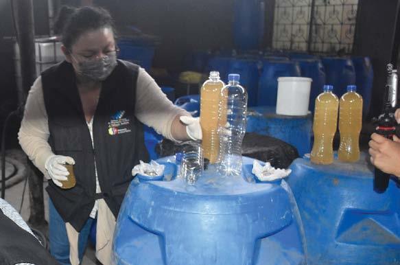 Pamela Ortiz, analista de la Agencia de Regulación, Control y Vigilancia Sani taria (Arcsa), explicó que se tomaron muestras de la sustancia decomisada y que las mismas serán anali zadas en los laboratorios de Quito. (JD)
