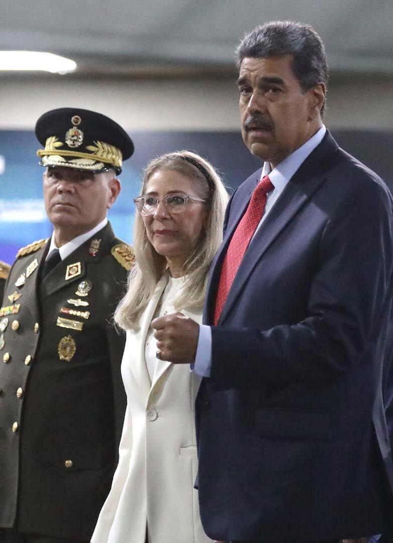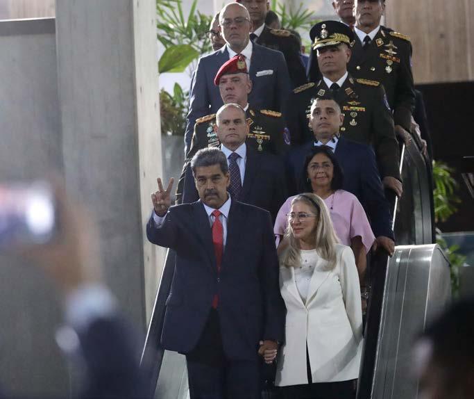El presidente de Venezuela, Nicolás Maduro (c), acompañado de la primera dama Cilia Flores (d), saluda a la salida del Tribunal Supremo de Justicia (TSJ) este miércoles, en Caracas (Venezuela). Foto: EFE/ Ronald Peña R.