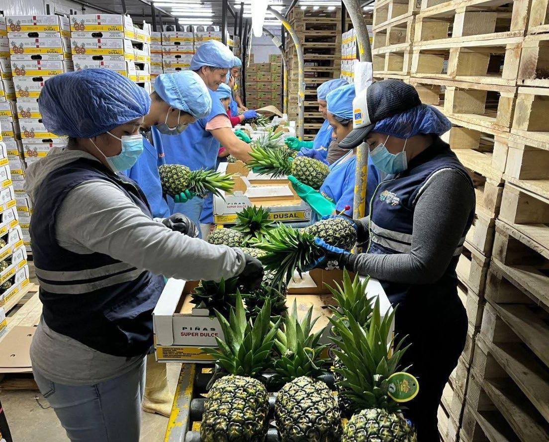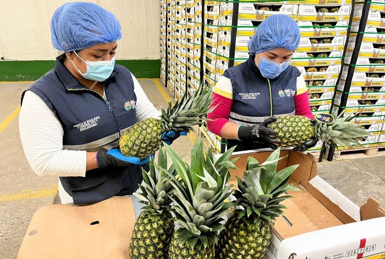 Luis Ortiz, director distrital de Agrocalidad, indicó que hasta mayo de 2023 se exportaron 17 mil 870 toneladas de piñas santodomingueñas hacia merca -