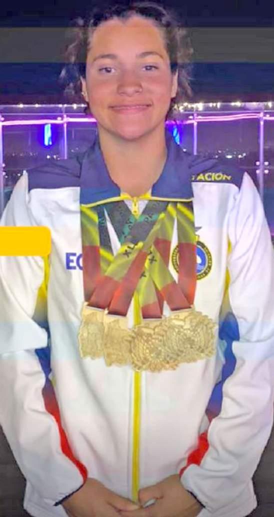 L a lojan a Dan iel a C o n t r e ras f or m ó pa rt e d e l a s e l e c c ió n del E c u ado r, l o grando cuatro medallas de oro, en las siguientes prue bas: medalla de oro en 200 m espalda y 100 m espalda en lo que va de la Copa del Pacífico, para luego compe tir en la Copa Julio Maglio ne en la categoría absoluta, sor p re ndi e ndo al país co n dos med allas de o ro e n su espec ialidad de 100 y 200