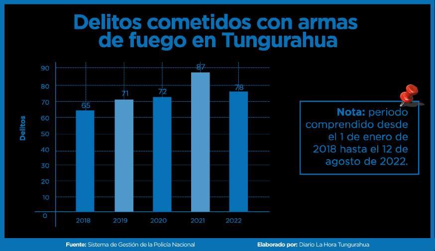 Como la terrible experiencia de Jaime, un total de 373 de litos con armas de fuego se han registrado en Tungurahua entre 2018 y 2022, según datos del Sistema de Gestión de la Policía Nacional.