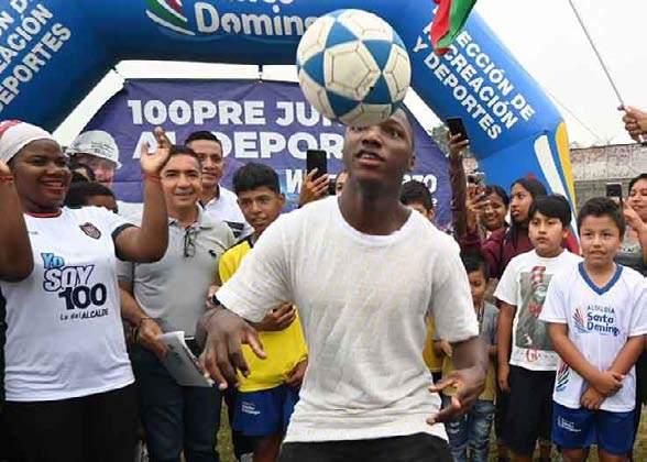 Con entusiasmo y euforia los estudiantes de las escuelas de fútbol municipales de Santo Domingo recibieron al seleccionado ecuatoriano Moisés Caicedo, luego de su participación en el Mun dial Catar 2022 , donde anotó el gol del empate ante Senegal.