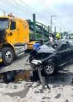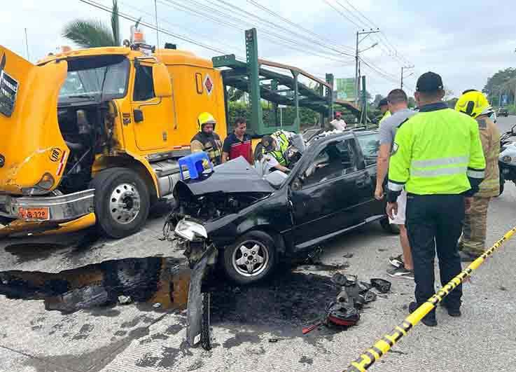 “Algo debe haberle pasado a la conductora del Suzuki, fue repentino que perdió pista y se pasó al otro carril, y eso que esta vía es amplia. El chofer de la plataforma no pudo hacer nada para evitar el choque y arrastró más de 30 metros al pequeño automóvil”, refirió.