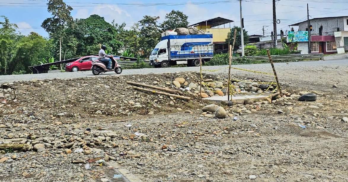 En la avenida Los Colonos, baipás Chone – Quevedo, colapsó una alcantarilla, la obra se realizó, pero quedó a medias. Este tramo no fue asfaltado y ahora quienes habitan en el lugar y transportistas sufren las consecuencias.