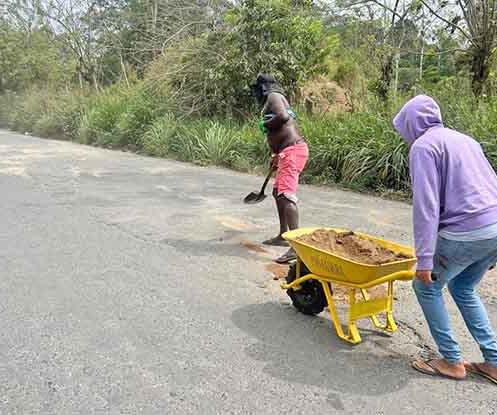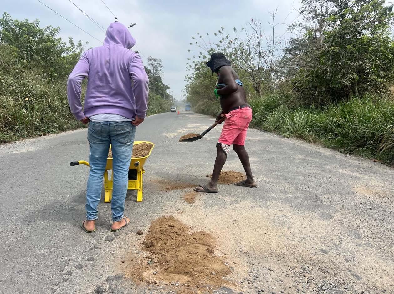 Ante la desatención del MTOP, los huecos en el baipás de La Concordia se tapan con tierra 05
