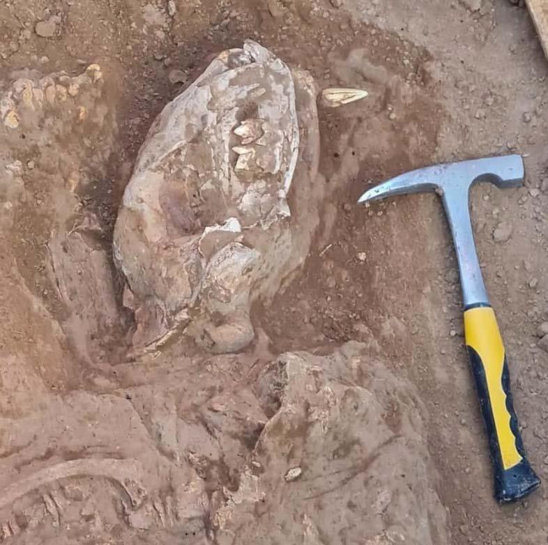 Los restos de un tigre diente de sable suramericano, el felino registrado más grande del planeta, de unos 10.000 años de antigüedad, fueron hallados bastante completos y articulados durante unas obras de construcción de una vivienda en Argentina. EFE/ Matías Taglioretti paleontólogo