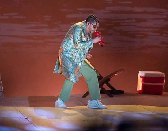 Con un escenario que simulaba ser una playa con palmeras, el cantante boricua inició su espectáculo con la canción ‘Moscow Mule’, coreada por un recinto con capacidad para alrededor de 87.000 personas.