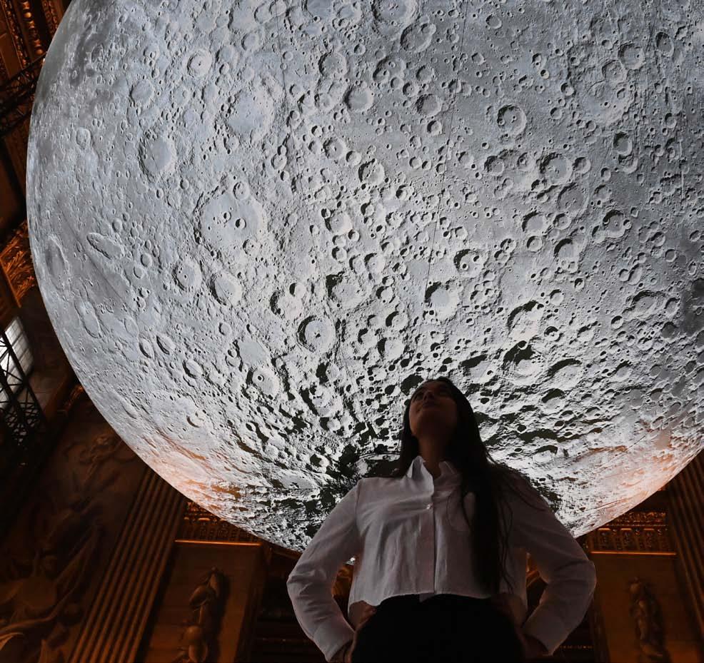 Vista de la instalación de la obra del artista británico Luke Jerram ‘Museum of the Moon’ (Museo de la Luna) en el Old Royal Naval College en Greenwich, Londres, Gran Bretaña, el 12 de diciembre de 2022. Se trata de una escala de la Luna de 1 cm a 5 km, que se encuentra suspendida en el Salón Pintado del Antiguo Colegio Naval. La instalación se realiza utilizando imágenes de la NASA y luces internas. EFE