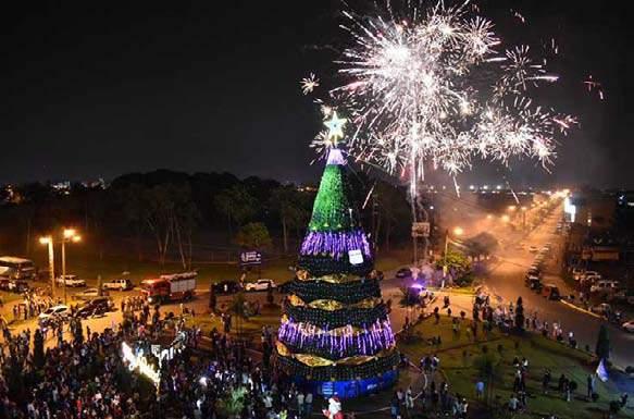 Con un evento especial, se iluminó el árbol de nueve metros de altura, como símbolo de la Navidad.