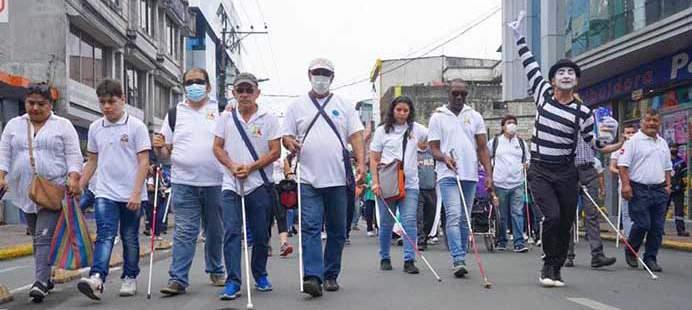 la Protección de Derechos realizó la mañana de ayer, miércoles 12 de octubre, una caminata desde la avenida Quito hasta el parque cen tral. Junto a personas con discapacidad visual, estu vieron estudiantes y ciuda danos.