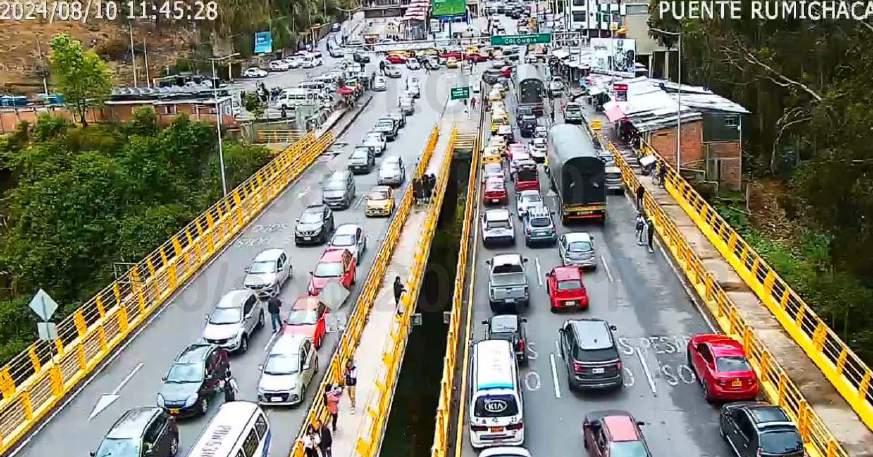 Flujo. Las cámaras del ECU-911 registraron una gran afluencia de carros en el puente de Rumichaca, el último fin de semana.