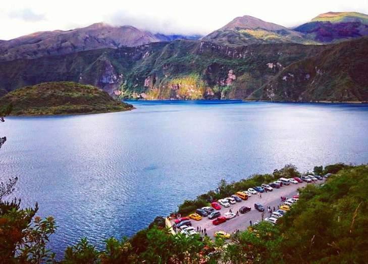 Luego se trasladó hasta la laguna Cuicocha , sitio donde se pretende colocar el teleférico.