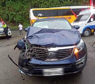 En esta zona, un vehículo pequeño tipo auto, marca Hyundai Accent, color plata, quedó atascado en una de las orillas de la vía, lleno de barro, agua y rocas, que bajaron de la parte alta de la mon tañ a. Otr os vehículo s altos como camionetas tam-