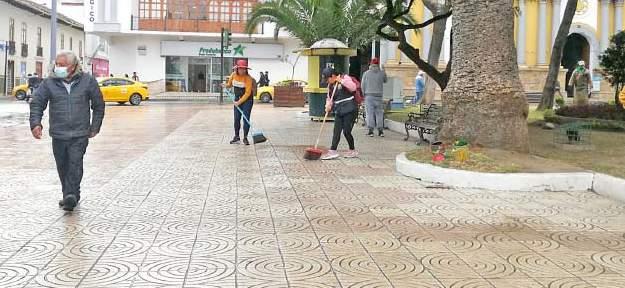ACCIONAR. Obreros del Municipio de Loja limpiaron las calles de la ciudad