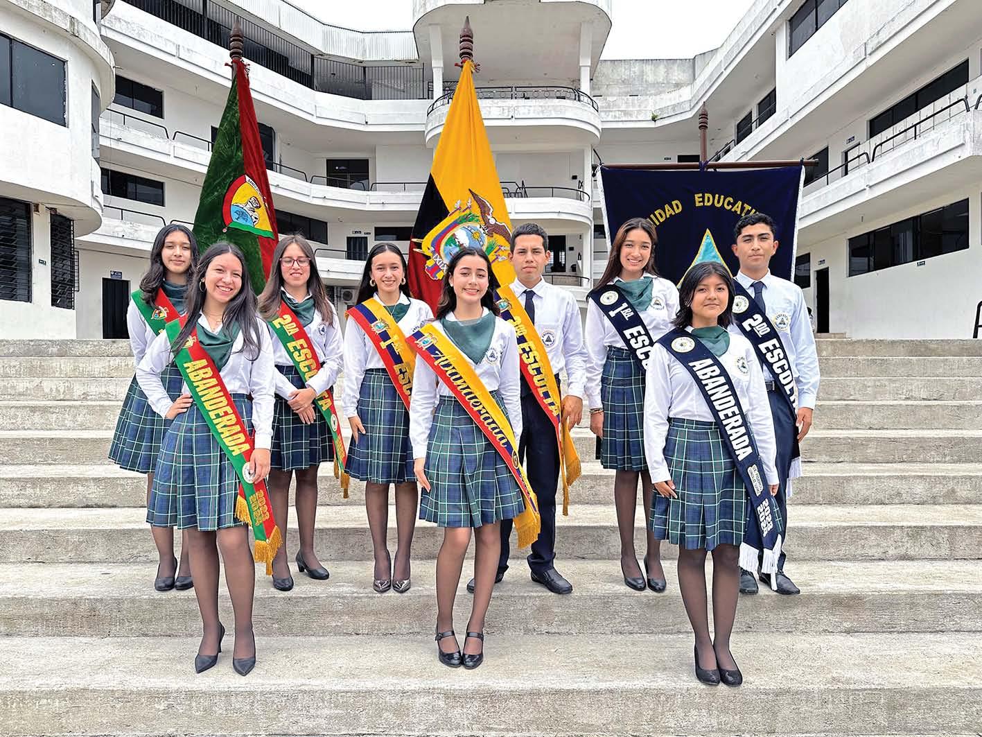 En todos los actos oficiales se recomienda que estén presentes, la Bandera Nacional de la República del Ecuador, la de la ciudad y la Institucional, todas en buen estado. Las banderas se ubicarán a la de-