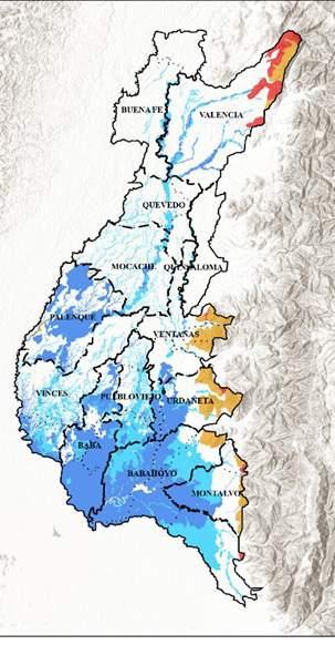 Y los que tienen tendencia media a desbordamientos son: Quevedo, Buena Fe, Quinsaloma, Mocache, Ventanas y Vinces, entre otros.