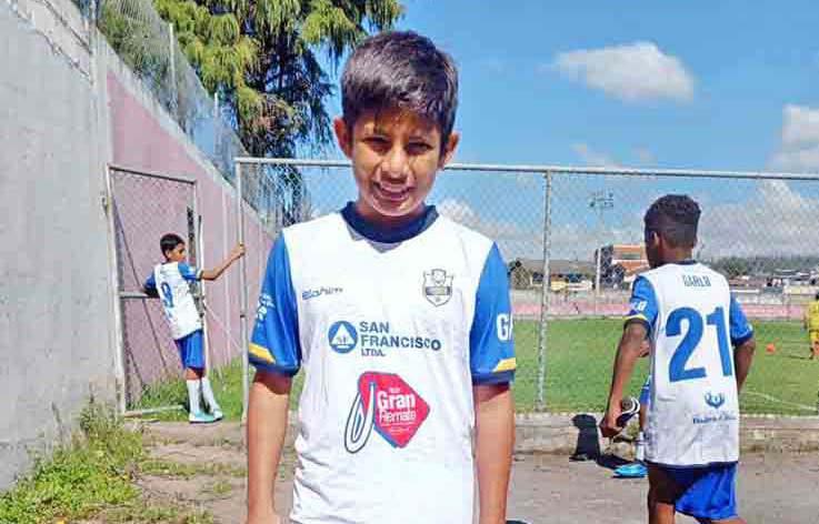 El santodomingueño Ismael Brito, de 12 años, sobresale en las formativas del club Vargas Torres, de Esmeraldas.
