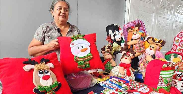 Cecilia Santillán desde mayo empieza a elaborar manualidades navideñas en tela y plumón, lo hace con anticipación para tener listo