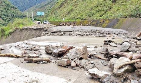 Ad e m á s , d e t e c t a r o n l a p r e s e n c i a de dos r oc a s gr a n des do n d e t uv i e r on q u e h a c e r u n tr ab ajo de vol adura s En e l kiló met ro 3 5, e n ca mbi o, s e perdió la mitad de la mesa de la vía, donde el paso se pone en peligro para el transporte pesado como los tráileres que trasladan material pétreo de l a s e mp resas m i ne ras de l a provincia amazónica. Pese al a r duo tr ab aj o, no pudi e ro n habilitar la vía y se prevé que hoy haya paso