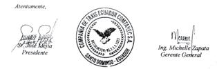 Se convoca de manera especial e individual a los comisarios de la Compañía, Sres. Segundo Gabriel Gaibor Vargas con dirección de correo electrónico sgaibor66@hotmail.com y Franco Leonidas Tinoco Ramírez con dirección de correo electrónico francotinoco060954@gmail.com.