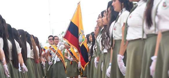 En la provincia se realizó el acto cívico de juramento a la bandera en las diferen tes unidades educativas , una de ellas es la Ciudad de Caracas, aquí, Patricio López portó la Bandera de Santo Domingo. Dijo estar emocionado, es un logró