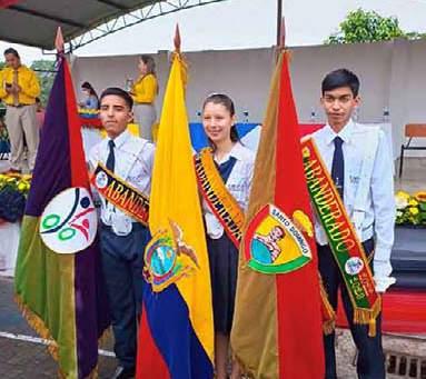 A Camila Baque Rosa do, de la unidad educativa Santo Domingo se le en tregó la Bandera Nacional. Para la estudiante ser parte del cuadro de honor es muy satisfactorio, porque así de muestra el empeño, perse verancia y responsabilidad que ha tenido durante su vida estudiantil. Mencionó que el logro no solo es de ella, sino de su familia quie nes siempre le han apoyado. Aseguró que todo esfuer zo tiene su recompensa y ese es el reconocimiento que ha conseguido en la secundaria.