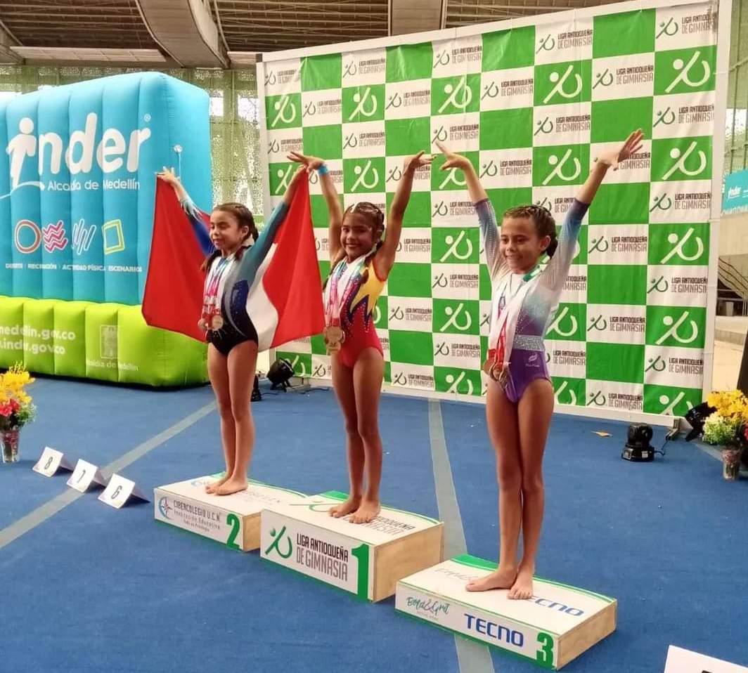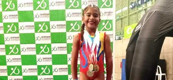 La gimnasta babahoyense, de ocho años de edad, ganó cuatro medallas en un torneo internacional realizado en Medellín, Colombia.