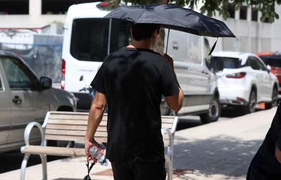 PrEvEnCión. Un hombre usa una sombrilla para protegerse del sol debido a las altas temperaturas.