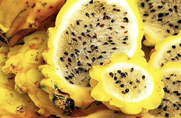 La variedad de esta fruta tiene la forma de un cactus, la tradicional se sembró alrededor del 2011, varios productores comenzaron a impulsar mucho esta pro ducción y se difundió de forma masiva. A raíz del 2016 y 2017 se comenzaron las exportaciones, e inicial mente cada esqueje para la semilla se vendía de 2.00 a 3.00 dólares, actualmente está entre $0,85 a $1,20 cada uno, se estima.