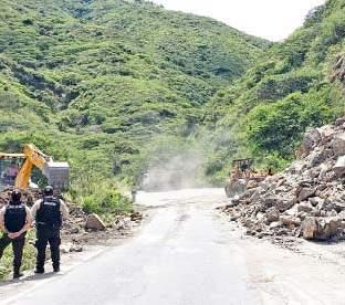 VIALIDAD. Maquinaria del MTOP continúa con la limpieza de la vía para habilitar el paso en ambos carriles
