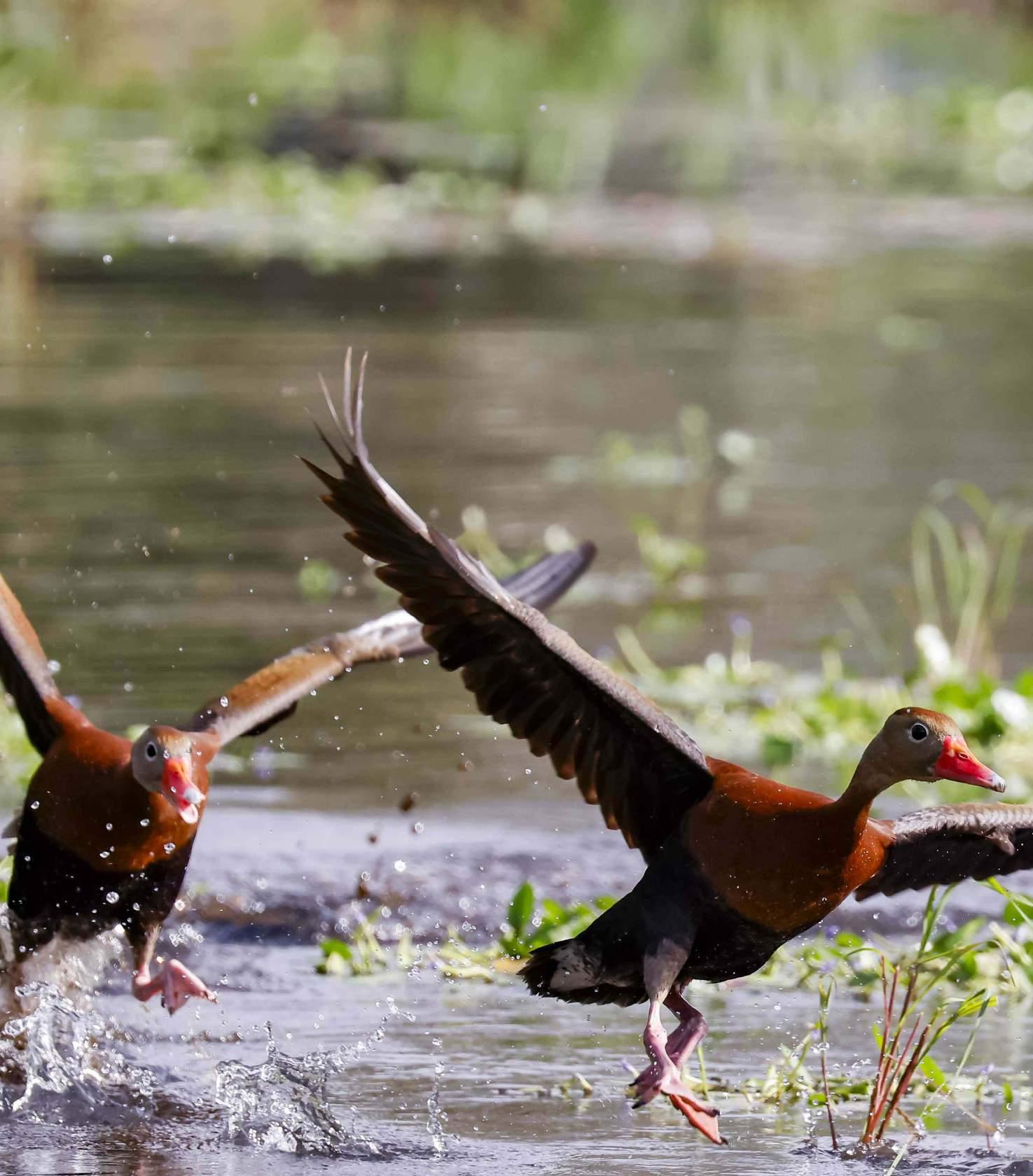 unos patos piches, en el lago del parque la sabana, ubicado en el centro de san José (Costa Rica). Afectado por la disminución de las lluvias a consecuencia del efecto climático de el niño, el lago ha bajado su nivel de agua considerablemente. eFe