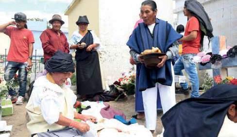 En los cantones Otavalo y Cotacachi, donde existe el ma yor porcentaje de población kichwa, durante esta época, las familias acostumbran llevar alimentos a los campo santos, que normalmente los colocan sobre un mantel junto al mau soleo, para consumirlo y com partirlo con sus vecinos y las almas de los difuntos.