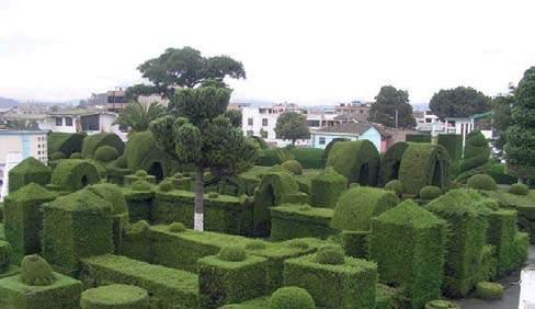 Las gigantes figuras de ci prés tienen estilo griego, egip cio, incaico, árabe, así como formas naturales. Además, se observan formas referentes a la fauna de las islas Galápa gos, ídolos y mascarones de las culturas indígenas del país, columnas góticas, arcos, entre otras.