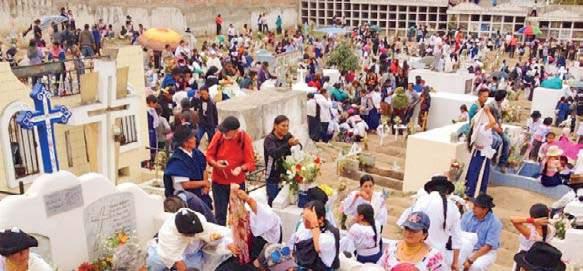 tierra les ofrece y se reúnen en el cementerio, donde yacen los restos de sus seres queridos, para compartir sus alimentos y bebidas, donde conversan, re zan e incluso cantan.