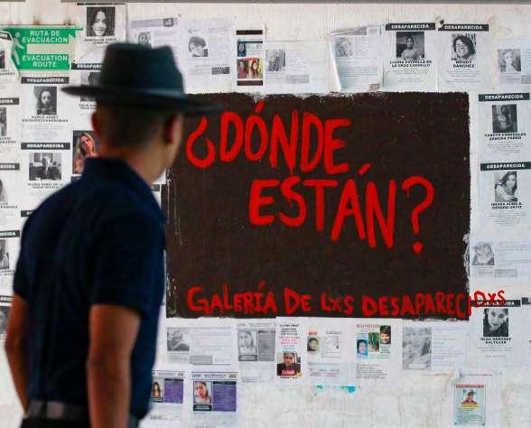 LUGAR. Un hombre observa un mural con fichas de personas desaparecidas, en el Centro Universitario de Ciencias Sociales y Humanidades de la Universidad de Guadalajara. (EFE/Francisco Guasco)