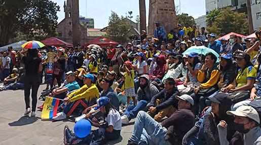 avenida Cevallos y calles aledañas , ecuatorianos y extranjeros ofrecían vuvu zelas, camisetas y banderas del país a todo precio.