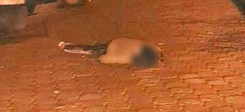 CRIMEN. Los restos del infortunado quedaron sobre la calle en medio de la mirada atónita de vecinos del lugar.