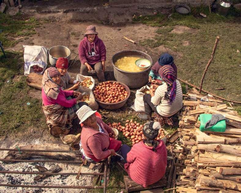 En este sector no hay prioste mayor que brinde la comida a los bailadores, aquí los vecinos son quienes se hicieron cargo de todo, colaboraron para contratar a la banda, otros donaron papas y un vecino donó un toro para la comida del 25 de diciembre, aquí el sentido de comunidad se siente, todos se conocen, se saludan y abrazan.