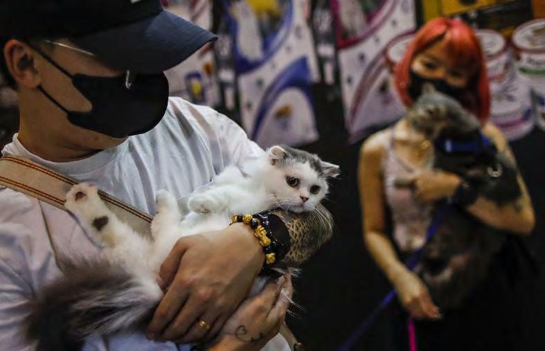 Una mujer posa para una foto de recuerdo tomada de ella con una mascota de gato durante la Cat Expo 2022 en Kuala Lumpur. La mitología egipcia, nórdica, germánica y china coloca a los gatos como dioses. Un hombre sostiene a su gato durante la Cat Expo 2022 en Kuala Lumpur, Malasia.Beneficios psicológicos de tener un gato
