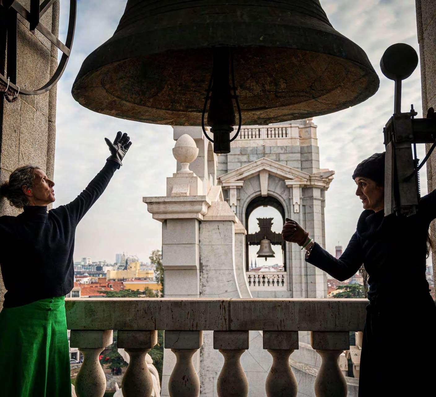 Las campanas de la catedral de la Almudena, en Madrid, sonaron el mediodía de ayer celebrar la resolución de la Unesco del miércoles de declarar el toque manual de campanas como Patrimonio Inmaterial de la Humanidad. (EFE/Fernando Villar